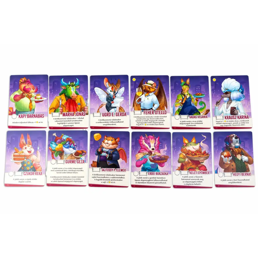 Wyobraź sobie, że prowadzisz własne bistro w tętniącej życiem dzielnicy restauracyjnej małego miasta – i to nie byle jak! W grze planszowej "Zwierzodania" ty i twoja rodzina wcielacie się w wyjątkowych, zwierzęcych szefów kuchni, aby rywalizować o najlepsze dania, najsmaczniejsze składniki oraz względy krytyków. Czeka was pełna emocji, taktyczna rozgrywka, w której każda decyzja ma znaczenie, a każda runda przynosi nowe wyzwania!